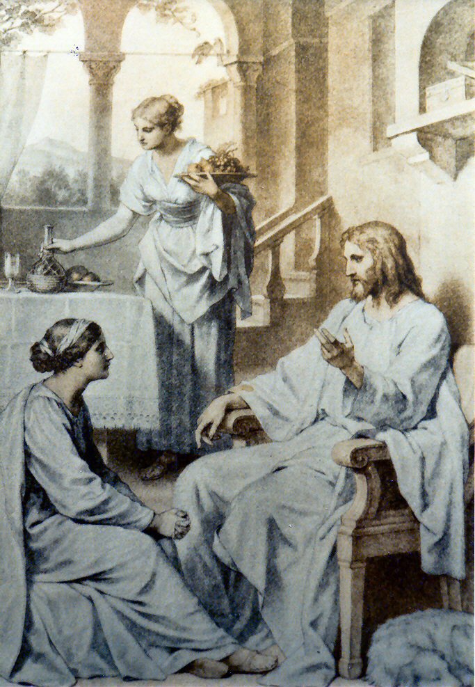 Jesus entered a village where a woman whose name was Martha welcomed him.  She had a sister named Mary who sat beside the Lord at his feet listening to him speak.  Martha, burdened with much serving, came to him and said, "Lord, do you not care that my sister has left me by myself to do the serving?  Tell her to help me."  The Lord said to her in reply, "Martha, Martha, you are anxious and worried about many things.  There is need of only one thing.  Mary has chosen the better part and it will not be taken from her."