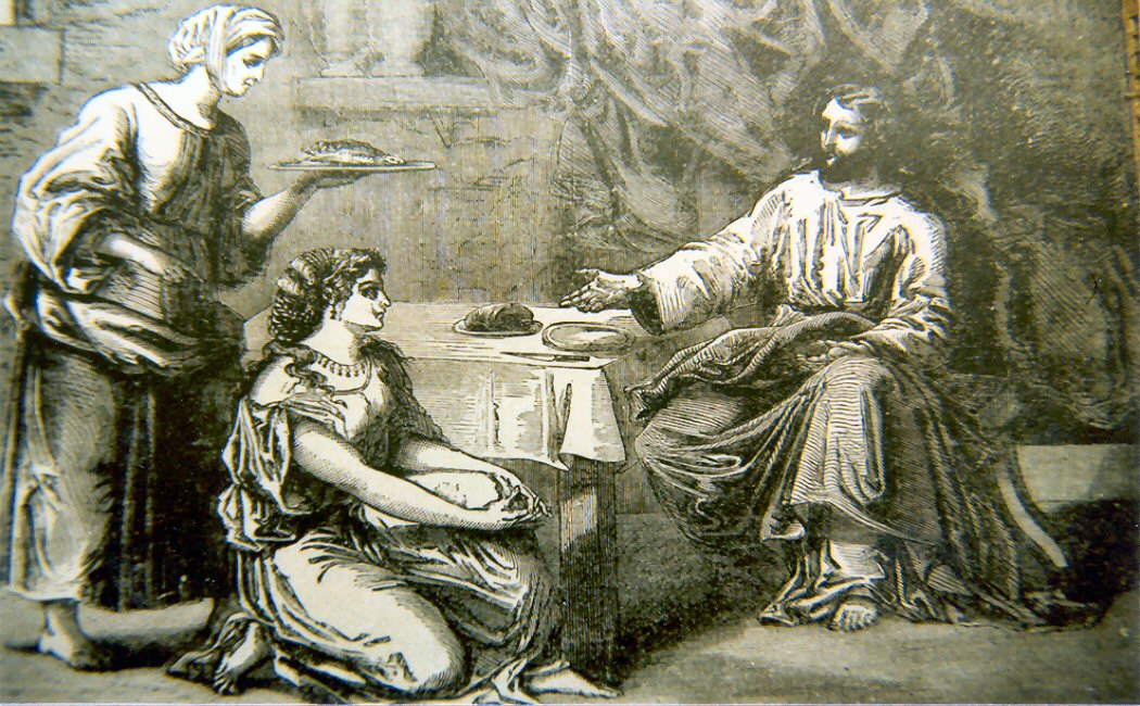Jesus entered a village where a woman whose name was Martha welcomed him. She had a sister named Mary who sat beside the Lord at his feet listening to him speak. Martha, burdened with much serving, came to him and said, "Lord, do you not care that my sister has left me by myself to do the serving? Tell her to help me." The Lord said to her in reply, "Martha, Martha, you are anxious and worried about many things. There is need of only one thing. Mary has chosen the better part and it will not be taken from her."