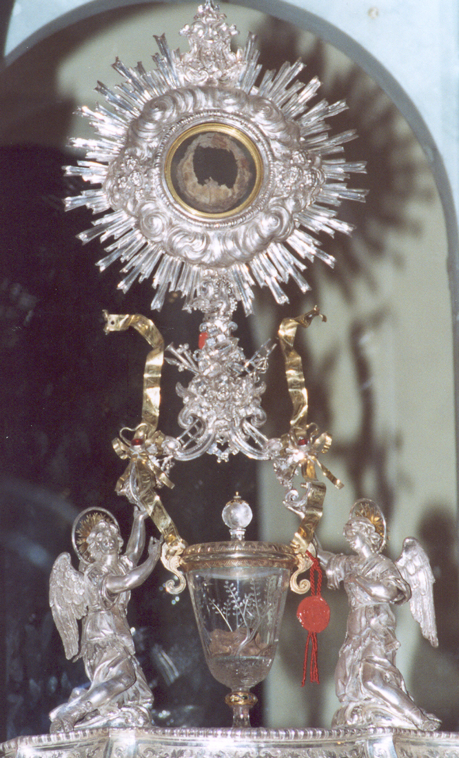 In order to perpetuate and strengthen our faith in Your Real Presence in the Eucharist, You changed the consecrated species of bread and wine into Flesh and Blood, which are perpetually reserved in the Eucharistic Sanctuary of Lanciano. Oh, increase ever more our faith in You, Sacramental Lord.