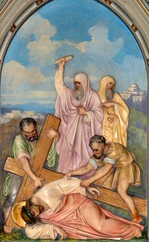 Consider the first fall of Jesus. Loss of blood from the scourging and crowning with thorns had so weakened Him that He could hardly walk; and yet He had to carry that great load upon His shoulders. As the soldiers struck Him cruelly, He fell several times under the heavy cross.