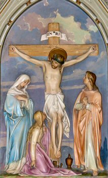 Consider how your Jesus, after three hours of agony on the cross, is finally overwhelmed with suffering and, abandoning Himself to the weight of His body, bows His head and dies.