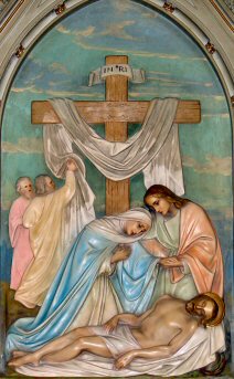 Consider how, after Our Lord had died, He was taken down from the cross by two of His disciples, Joseph and Nicodemus, and placed in the arms of His afflicted Mother. She received Him with unutterable tenderness and pressed Him close to her bosom.