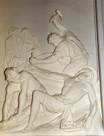 At the Last Supper, Jesus passed the cup of wine to his Apostles with the words, "Drink it all of you for this is my blood which will be poured out for many for the forgiveness of sin," and here on Calvary, the redeeming blood flows freely from his hands and feet as the nails are driven into the tender flesh. The barbarity of the scene is horrifying, yet in our own day brutality survives on a grand scale in the calculated cruelty of modern warfare and in the thoughtless violence within our own towns and cities.