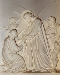 He had no form or comeliness that we should look at him, no beauty that we should desire him. He was despised and rejected, a man of sorrow and acquainted with grief. (Isaiah 53:3) As Jesus proceeded on his way covered with the sweat of death, a woman in the crowd came forward to wipe his face. The impression of his countenance remained upon the cloth she used. Here, we see woman at her best, stepping forward bravely to relieve pain and suffering.