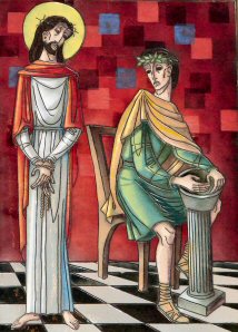 Leader: And Pilate said to the Jews, "Behold, your king!" But they cried out, "Away with him! Away with him! Crucify him!" Pilate said to them, "Shall I crucify your king?" The chief priests answered, "We have no king but Caesar." Then he handed him over to them to be crucified. And so they took Jesus and led him away, bearing the cross for himself. (Jn 19:14-17)