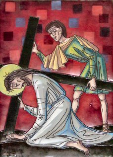 Hymn: Simon stopped in hesitation, not foreseeing his proud station, called to bear the Cross of Christ.