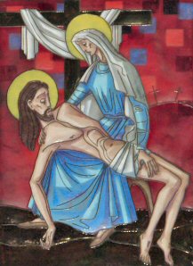 Hymn: Stunned and stricken, Mary, Mother in your arms was placed our Brother, "Full of grace" now filled with grief.