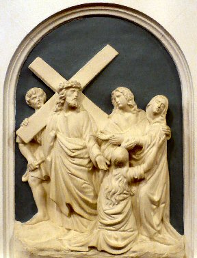 “Your face, Lord, do I seek. Hide not your face from me” (Ps 27:8-9). Veronica – Bernice, in the Greek tradition – embodies the universal yearning of the devout men and women of the Old Testament, the yearning of all believers to see the face of God. On Jesus’ Way of the Cross, though, she at first did nothing more than perform an act of womanly kindness: she held out a facecloth to Jesus. She did not let herself be deterred by the brutality of the soldiers or the fear which gripped the disciples. She is the image of that good woman, who, amid turmoil and dismay, shows the courage born of goodness and does not allow her heart to be bewildered. “Blessed are the pure in heart,” the Lord had said in his Sermon on the Mount, “for they shall see God” (Mt 5:8). At first, Veronica saw only a buffeted and pain-filled face. Yet her act of love impressed the true image of Jesus on her heart: on his human face, bloodied and bruised, she saw the face of God and his goodness, which accompanies us even in our deepest sorrows. Only with the heart can we see Jesus. Only love purifies us and gives us the ability to see. Only love enables us to recognize the God who is love itself.