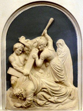 Jesus is nailed to the Cross. The shroud of Turin gives us an idea of the unbelievable cruelty of this procedure. Jesus does not drink the numbing gall offered to him: he deliberately takes upon himself all the pain of the Crucifixion. His whole body is racked; the words of the Psalm have come to pass: “But I am a worm and no man, scorned by men, rejected by the people” (Ps 22:7). “As one from whom men hide their faces, he was despised… surely he has borne our grief and carried our sorrows” (Is 53:3f). Let us halt before this image of pain, before the suffering Son of God. Let us look upon him at times of presumptuousness and pleasure, in order to learn to respect limits and to see the superficiality of all merely material goods. Let us look upon him at times of trial and tribulation, and realize that it is then that we are closest to God. Let us try to see his face in the people we might look down upon. As we stand before the condemned Lord, who did not use his power to come down from the Cross, but endured its suffering to the end, another thought comes to mind. Ignatius of Antioch, a prisoner in chains for his faith in the Lord, praised the Christians of Smyrna for their invincible faith: he says that they were, so to speak, nailed with flesh and blood to the Cross of the Lord Jesus Christ (1:1). Let us nail ourselves to him, resisting the temptation to stand apart, or to join others in mocking him.
