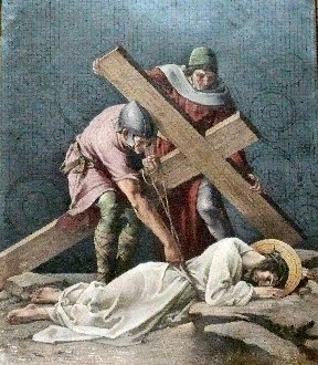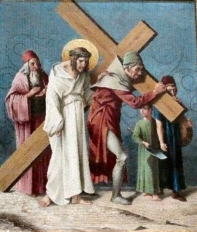 As they went out, they came upon a man of Cyrene.  Simon by name; this man they compelled to carry his cross.  Jesus told his disciples, “If any man would come after me, let him deny himself and take up his cross and follow me.