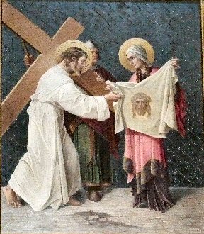 “Your face, Lord, do I seek.  Hide not your face from me” (Ps 27:8-9).  Veronica – Bernice, in the Greek tradition – embodies the universal yearning of the devout men and women of the Old Testament, the yearning of all believers to see the face of God.  On Jesus’ Way of the Cross, though, she at first did nothing more than perform an act of womanly kindness: she held out a facecloth to Jesus.  She did not let herself be deterred by the brutality of the soldiers or the fear which gripped the disciples.  She is the image of that good woman, who, amid turmoil and dismay, shows the courage born of goodness and does not allow her heart to be bewildered.  “Blessed are the pure in heart,” the Lord had said in his Sermon on the Mount, “for they shall see God” (Mt 5:8).  At first, Veronica saw only a buffeted and pain-filled face.  Yet her act of love impressed the true image of Jesus on her heart: on his human face, bloodied and bruised, she saw the face of God and his goodness, which accompanies us even in our deepest sorrows.  Only with the heart can we see Jesus.  Only love purifies us and gives us the ability to see.  Only love enables us to recognize the God who is love itself.