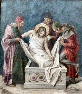Jesus, disgraced and mistreated, is honorably buried in a new tomb.  Nicodemus brings a mixture of myrrh and aloes, about a hundred pounds weight, which gives off a precious scent.  In the Son’s self-offering, as at his anointing in Bethany, we see an “excess” which evokes God’s generous and superabundant love.  God offers himself unstintingly.  If God’s measure is superabundance, then we for our part should consider nothing too much for God.  This is the teaching of Jesus himself, in the Sermon on the Mount (Mt 5:20).  But we should also remember the words of Saint Paul, who says that God “through us spreads the fragrance of the knowledge of Christ everywhere.  We are the aroma of Christ” (2 Cor 2:14ff.).  Amid the decay of ideologies, our faith needs once more to be the fragrance which returns us to the path of life.  At the very moment of his burial, Jesus’ words are fulfilled: “Truly, truly, I say to you, unless a grain of wheat falls to the earth and dies, it remains alone; but if it dies, it bears much fruit” (Jn 12:24).  Jesus is the grain of wheat which dies.  From that lifeless grain of wheat comes forth the great multiplication of bread which will endure until the end of the world.  Jesus is the bread of life which can satisfy superabundantly the hunger of all humanity and provide its deepest nourishment.  Through his Cross and Resurrection, the eternal Word of God became flesh and bread for us.  The mystery of the Eucharist already shines forth in the burial of Jesus.