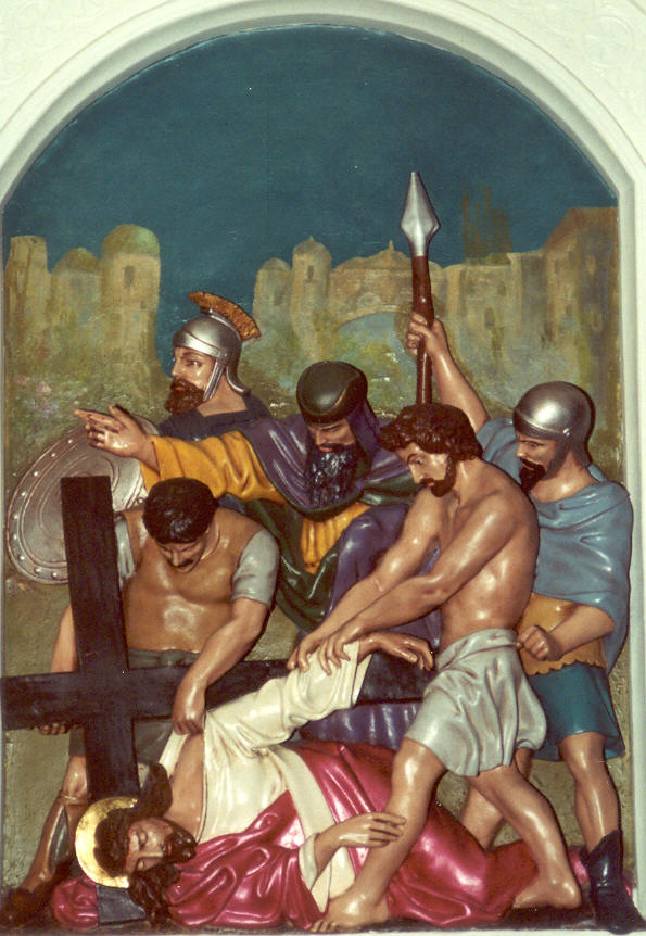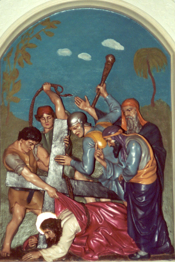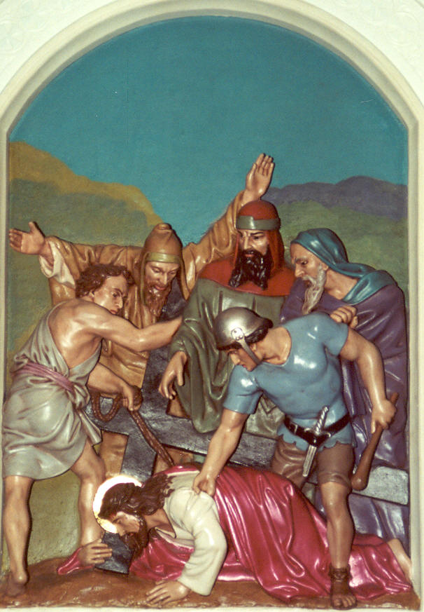 Consider how Jesus, overcome by weariness and pain, fell to the ground under the weight of the cross. |