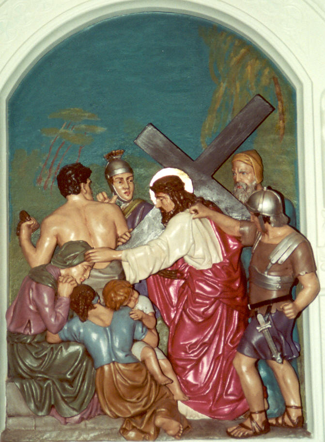 Consider how Jesus exhorts these women to weep, not for Him, but for themselves; to teach me to weep more for my sins than for His sufferings. |