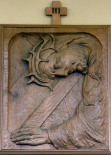 Consider the first fall of Jesus. Loss of blood from the scourging and crowning with thorns had so weakened Him that He could hardly walk; and yet He had to carry that great load upon His shoulders. As the soldiers struck Him cruelly, He fell several times under the heavy cross.