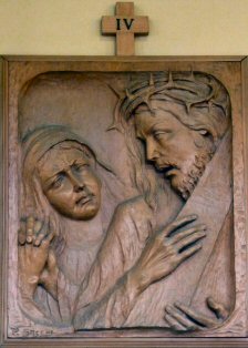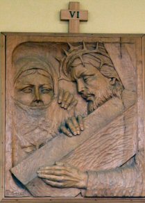 Consider the compassion of the holy woman, Veronica. Seeing Jesus in such distress, His face bathed in sweat and blood, she presented Him with her veil. Jesus wiped His face, and left upon the cloth the image of His sacred countenance.