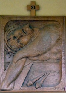 Consider Jesus, thrown down upon the cross, He stretched out His arms and offered to His eternal Father the sacrifice of His life for our salvation. They nailed His hands and feet, and the, raising the cross, left Him to die in anguish.