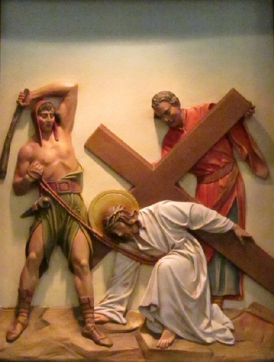 Consider how Jesus, overcome by weariness and pain, fell to the ground under the weight of the cross.