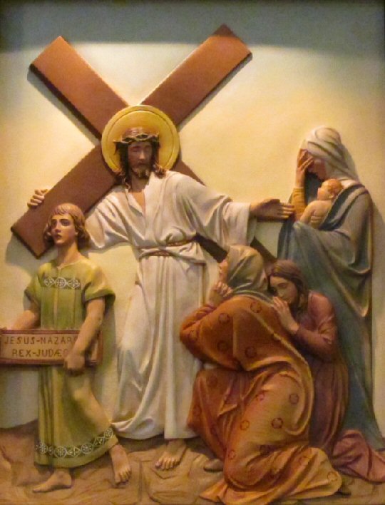Consider how Jesus exhorts these women to weep, not for Him, but for themselves; to teach me to weep more for my sins than for His sufferings.