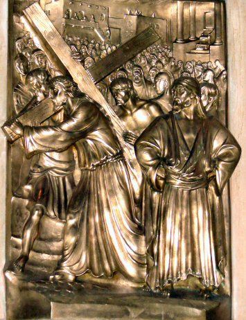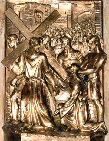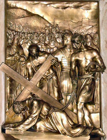 Jesus is helped by Simon