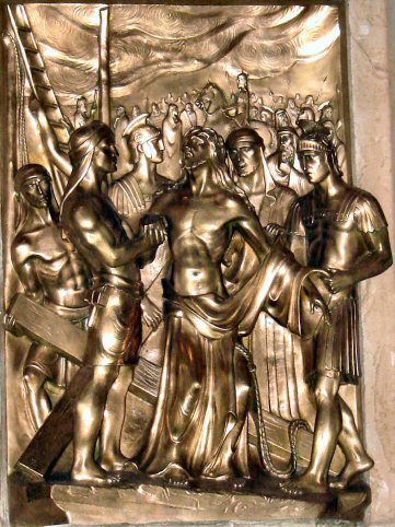 Jesus is stripped of his garments.