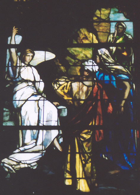 Although it may have been a beautiful spring morning, the women's hearts were not light.  The teacher they had loved and honored as the Messiah was dead.  The disciples were still hidden indoors, heartbroken over Jesus' death and in fear for their lives.  On top of everything else, the women worried that they would not be able to perform this last act of love, the anointing of their dead master.  The tomb was shut with a large stone which they themselves could not move.  And it did not seem likely that the Roman guards, sent to the tomb to keep Jesus' disciples away, were going to help them.  It must have seemed to the women that the forces of evil had won a terrible victory.