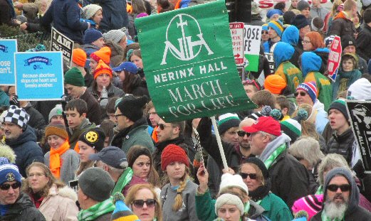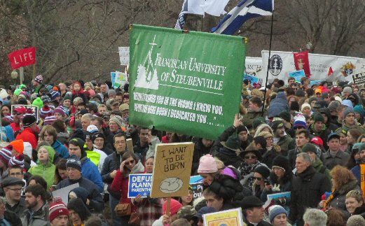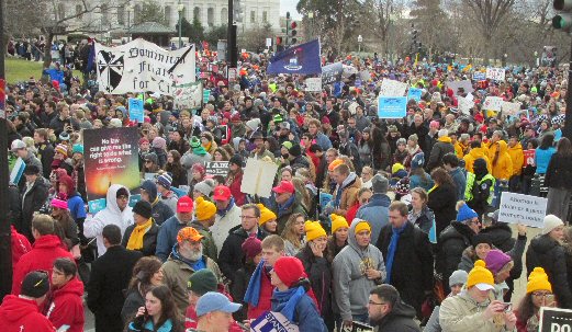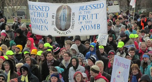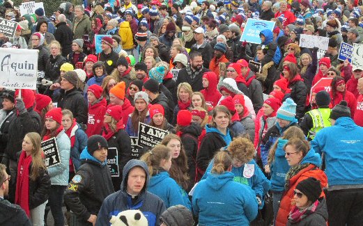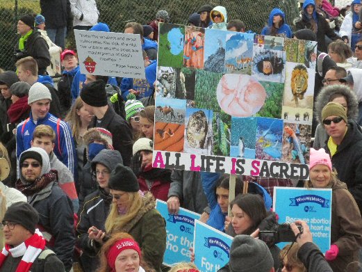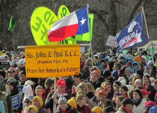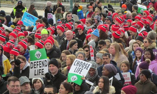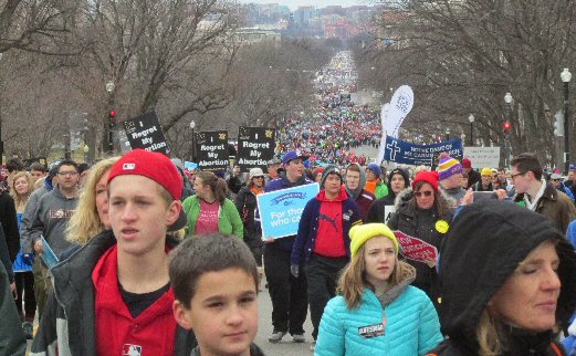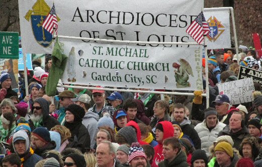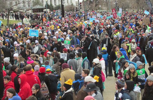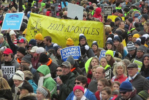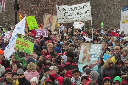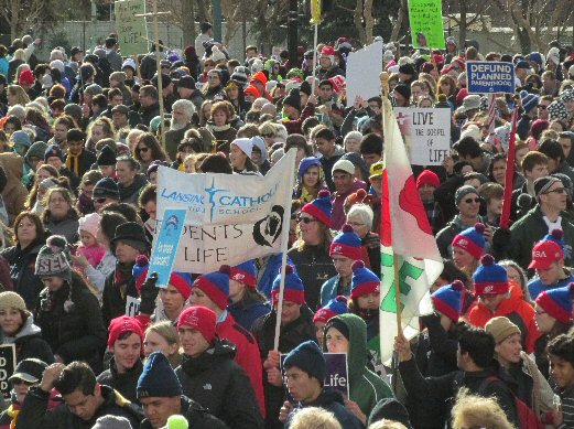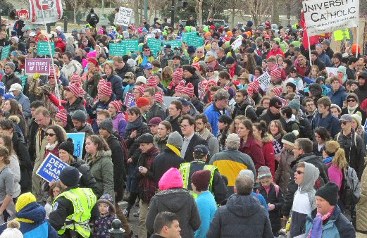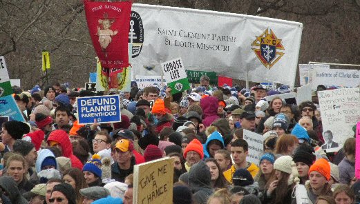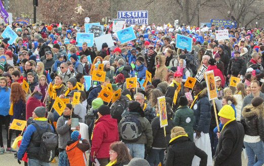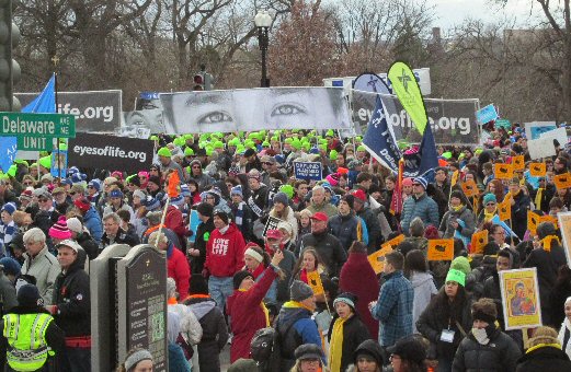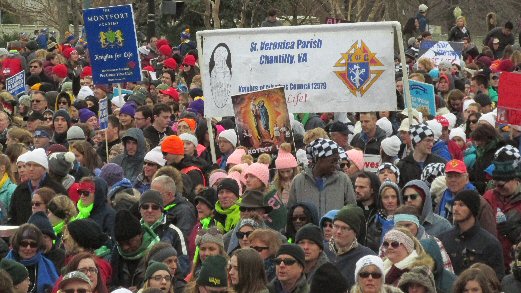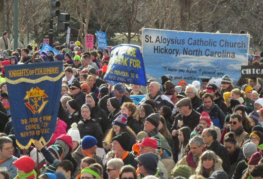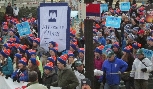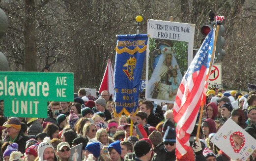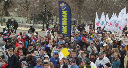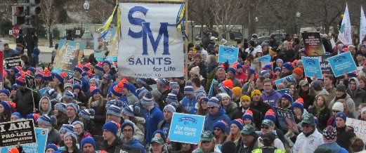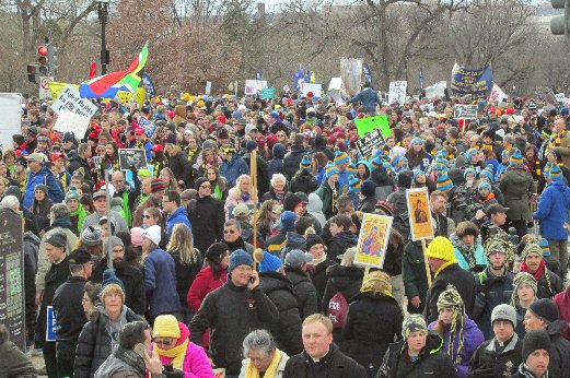 The clouds which had darkened the past several winter days were pierced by the sun in the morning of the annual March For Life.  Its bright rays illumined the edges of the broken clouds with brilliant gold as if promising a change and new hope.  The March For Life likewise inspired more than 500,000 citizens and visitors from other countries to gather in Washington, D.C. and unite themselves in solidarity to demonstrate they shared in the same responsibility to encourage and protect human life from the moment of conception to natural death.  Like the new sunrise, they pledged a new beginning of hope, dedication and labor.