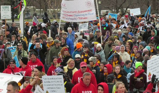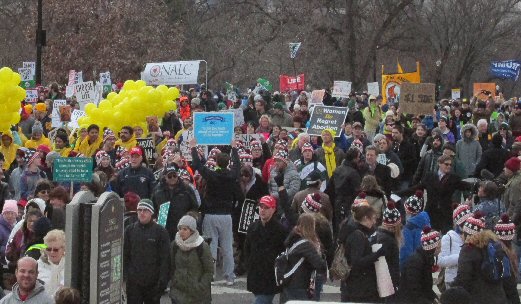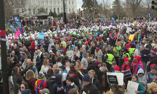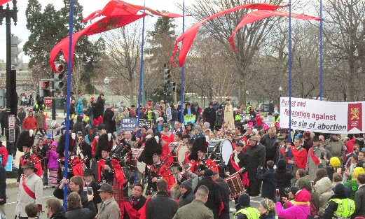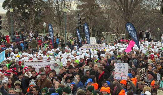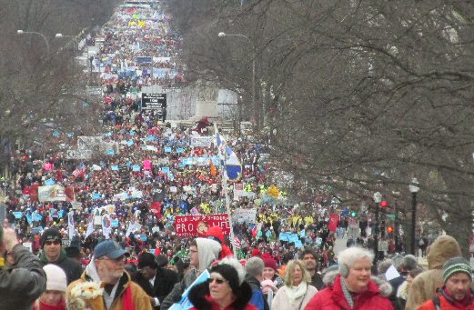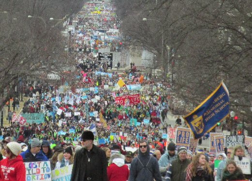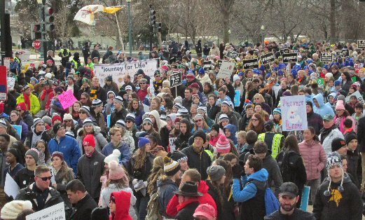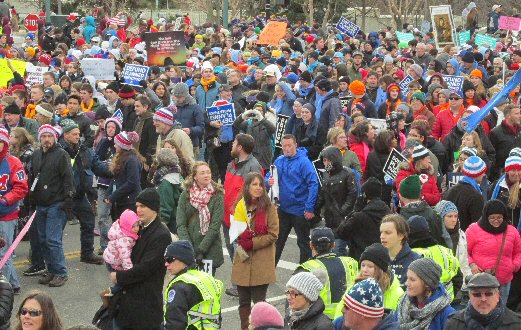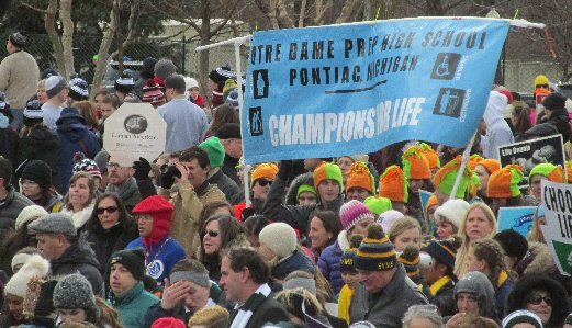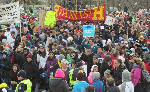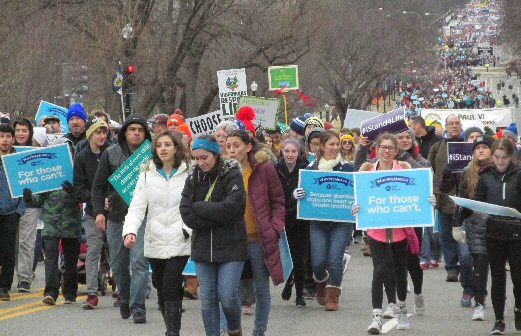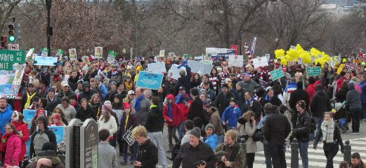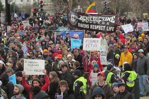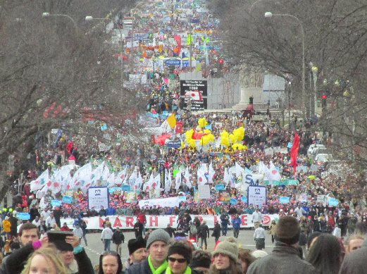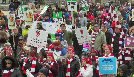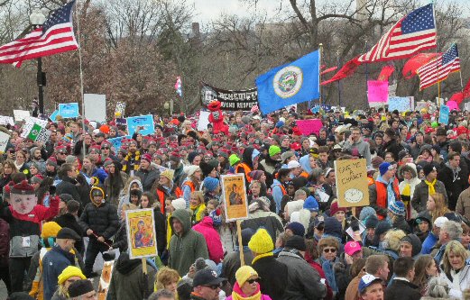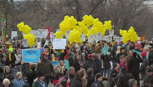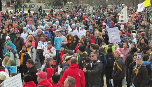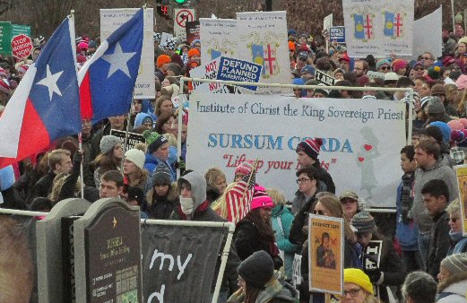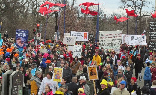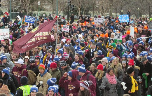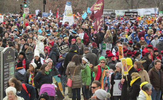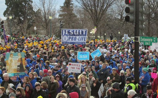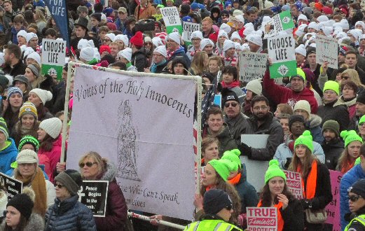 The clouds which had darkened the past several winter days were pierced by the sun in the morning of the annual March For Life.  Its bright rays illumined the edges of the broken clouds with brilliant gold as if promising a change and new hope.  The March For Life likewise inspired more than 500,000 citizens and visitors from other countries to gather in Washington, D.C. and unite themselves in solidarity to demonstrate they shared in the same responsibility to encourage and protect human life from the moment of conception to natural death.  Like the new sunrise, they pledged a new beginning of hope, dedication and labor.