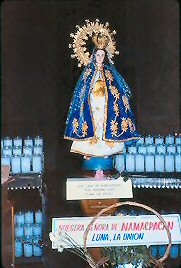 In another miracle, tribal families from the mountains came to the town asking for baptism. They said they were invited to receive the sacrament by a tall beautiful lady who spoke with them and gave them food and blankets. When they entered the church, they immediately recognized that statue of Mary as the lady and discovered the blankets she had given them lying on the floor at the foot of the altar.