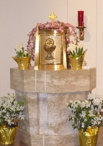 The Priest Approaches and Kisses the Altar: The altar is a symbol of Christ. In it are cut five crosses to recall the five wounds of Christ. The altar also represents the Church and has embedded in it the relics of her saints. The priest comes to the altar to celebrate the Sacrifice in the Church's name. Because of the glory surrounding the altar upon which the divine Sacrifice will be made, the kiss of the priest unites the Church to Christ, its Redeemer.