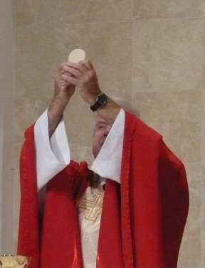 Red priestly vestments symbolize the appearance and indwelling of the Holy