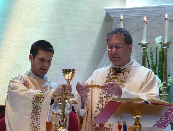 Priest: May this mingling of the Body and Blood of our Lord Jesus Christ bring eternal life to us who receive it.