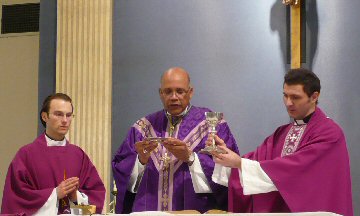 Priest:   May this sacrifice, O Lord, we pray, cleanse us of our faults and sanctify your faithful in body and mind for the celebration of the paschal festivities.  Through Christ our Lord.