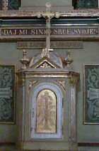 The Priest Approaches and Kisses the Altar: The altar is a symbol of Christ. In it are cut five crosses to recall the five wounds of Christ. The altar also represents the Church and has embedded in it the relics of her saints. The priest comes to the altar to celebrate the Sacrifice in the Church's name. Because of the glory surrounding the altar upon which the divine Sacrifice will be made, the kiss of the priest unites the Church to Christ, its Redeemer.