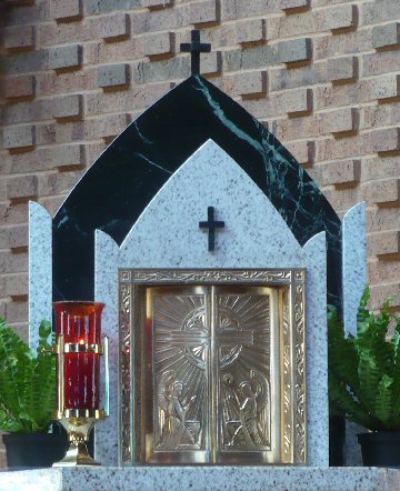 The Priest Approaches and Kisses the Altar: The altar is a symbol of Christ. In it are cut five crosses to recall the five wounds of Christ. The altar also represents the Church and has embedded in it the relics of her saints. The priest comes to the altar to celebrate the Sacrifice in the Church's name. Because of the glory surrounding the altar upon which the divine Sacrifice will be made, the kiss of the priest unites the Church to Christ, its Redeemer.