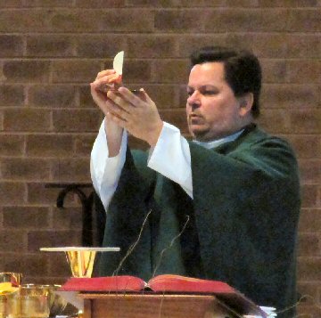 Priest: You are indeed Holy, O Lord, the fount of all holiness. Make holy, therefore, these gifts, we pray, by sending down your spirit upon them like the dewfall, so that they may become for us the Body and Blood of our Lord Jesus Christ. At the time he was betrayed and entered willingly into his Passion, he took bread and, giving thanks, broke it, and gave it to his disciples, saying: