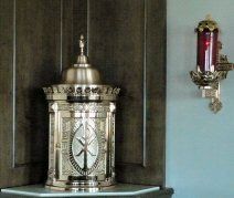 The Priest Approaches and Kisses the Altar: The altar is a symbol of Christ. In it are cut five crosses to recall the five wounds of Christ. The altar also represents the Church and has embedded in it the relics of her saints. The priest comes to the altar to celebrate the Sacrifice in the Church's name. Because of the glory surrounding the altar upon which the divine Sacrifice will be made, the kiss of the priest unites the Church to Christ, its Redeemer.